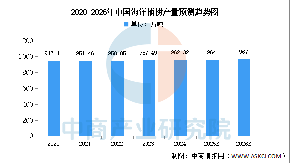 中國(guó)捕撈漁業(yè)產(chǎn)量連續(xù)多年全球第一,并大力建設(shè)“海洋牧場(chǎng)”,中國(guó)海洋捕撈產(chǎn)量也穩(wěn)定增長(zhǎng)。中商產(chǎn)業(yè)研究院發(fā)布的《2025-2030年中國(guó)海洋漁業(yè)深度分析及產(chǎn)業(yè)發(fā)展風(fēng)險(xiǎn)研究預(yù)測(cè)報(bào)告》顯示,2024年中國(guó)海洋捕撈產(chǎn)量達(dá)962.32萬噸,同比增長(zhǎng)0.5%。中商產(chǎn)業(yè)研究院分析師預(yù)測(cè),2025年中國(guó)海洋捕撈產(chǎn)量將達(dá)964萬噸,2026年將達(dá)967萬噸。
