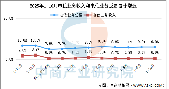 2025年1-10月中國通信業(yè)總體運行情況分析(圖)